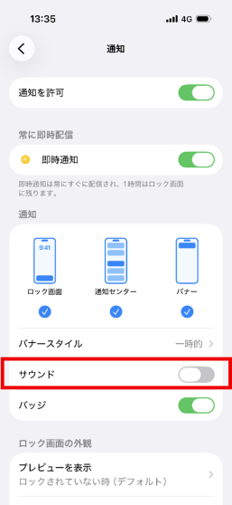 設定>アプリ>ほくりくふゆみち情報>通知>サウンドをOFF